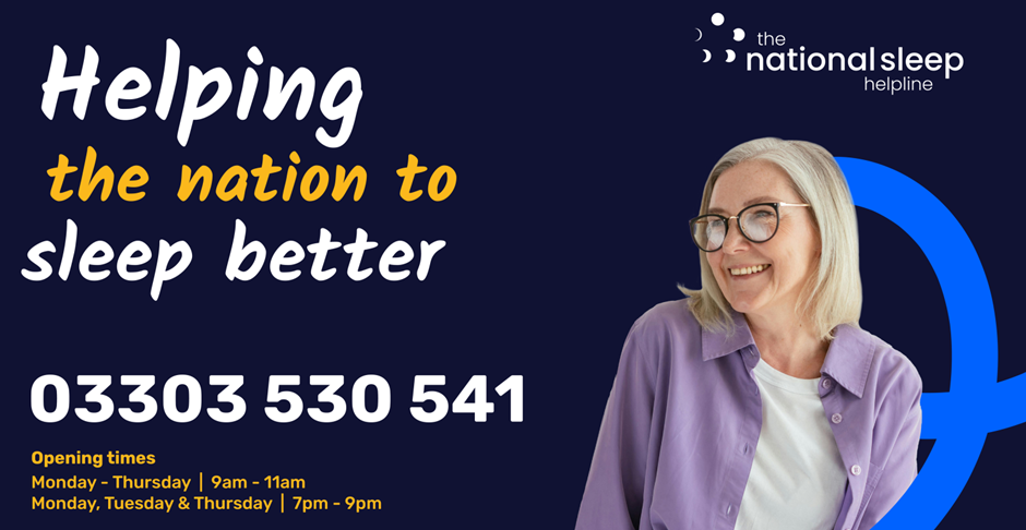 The National Sleep Helpline: If you’d like to talk about your sleep and accessing free advice, you can call the National Sleep Helpline on 03303 530 541 between 9am and 11am on Mondays – Thursdays and between 7pm and 9pm on Mondays, Tuesdays and Thursdays. Calls are charged at your standard network rate.